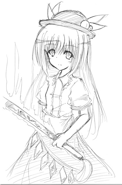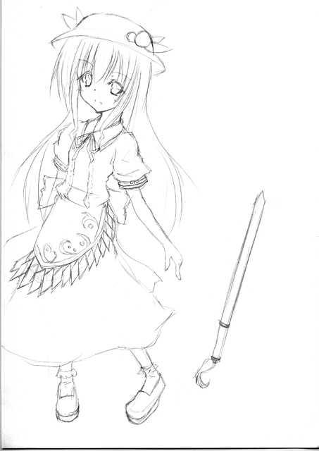 漫研の部室ノートにも同じく天子描きましたが、やっぱりリボンとか忘れてました。(爆